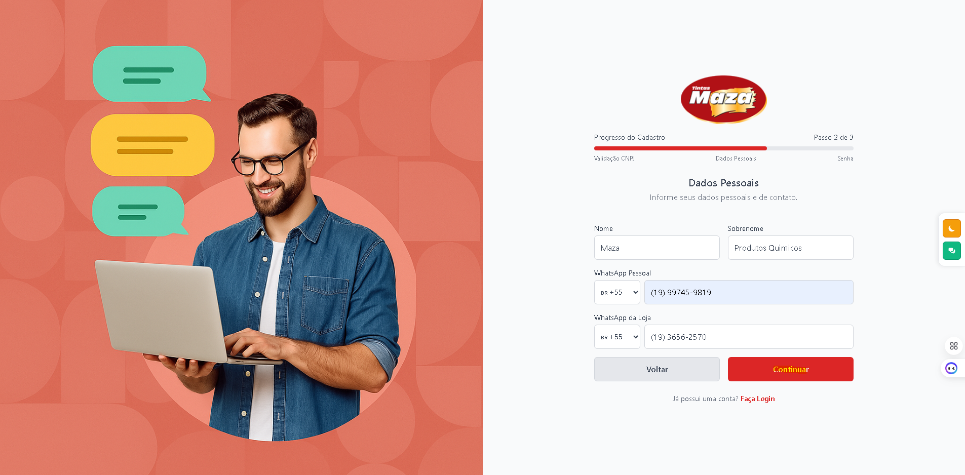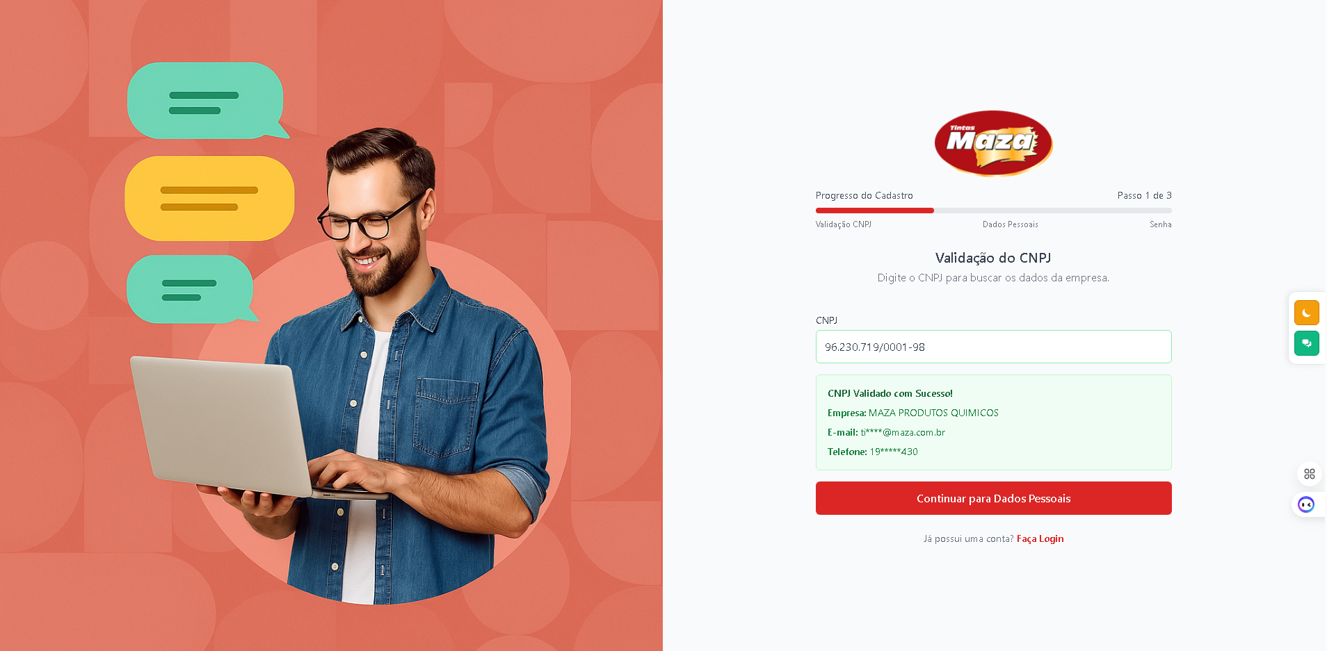 O processo de cadastro no Portal do cliente Maza é simples, seguro e dividido em etapas automáticas de validação. Acompanhe o passo a passo abaixo: